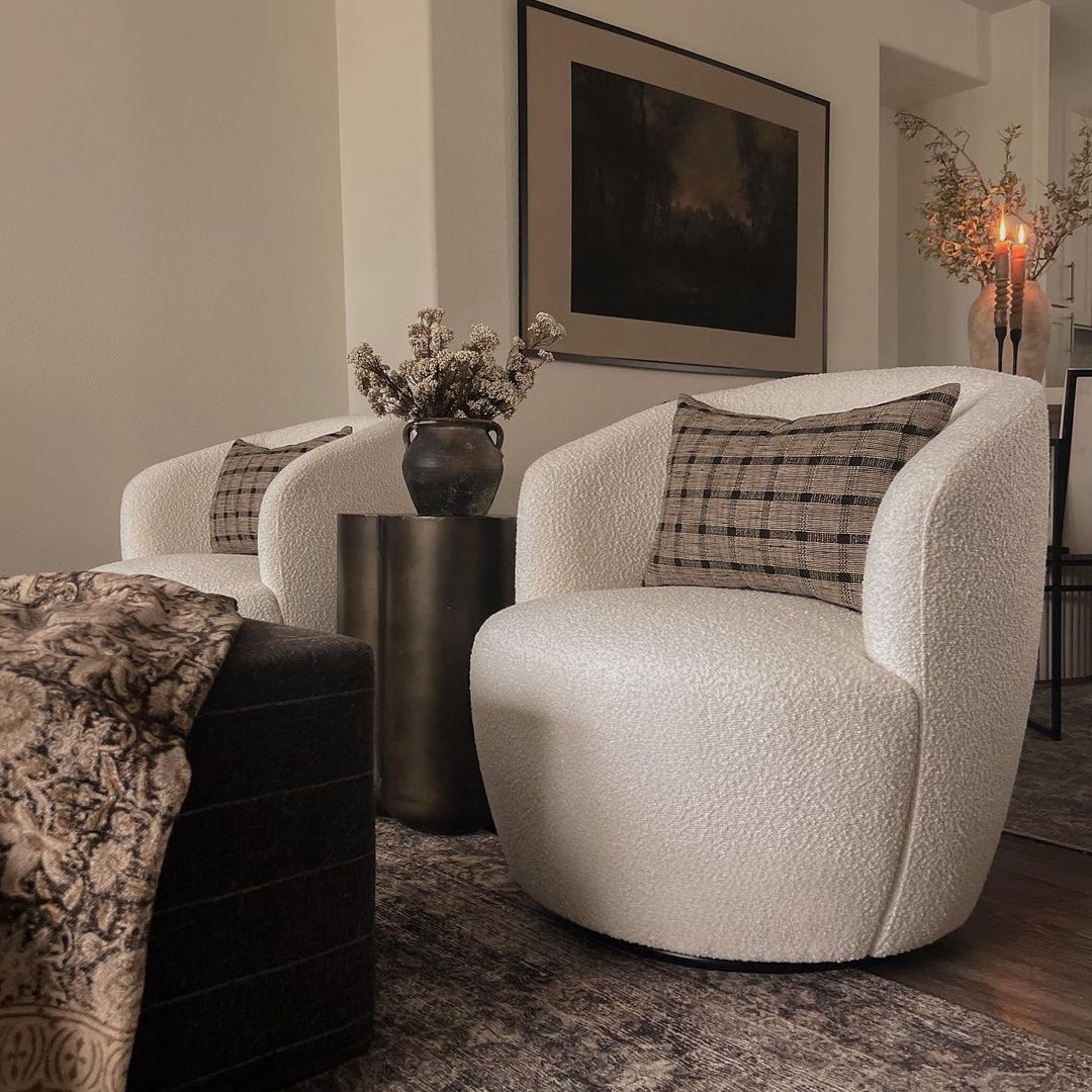 The Bella 28 "Swivel Barrel Chair exhibits a unique blend of classic style and modern functionality. Its Sherpa upholstery not only adds a fashionable touch to your interior decoration but provides unparalleled comfort.