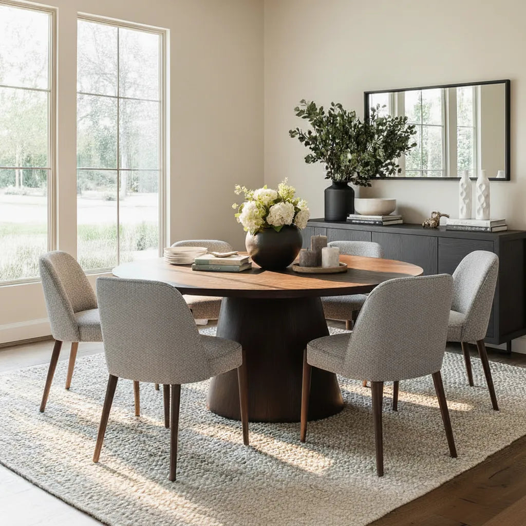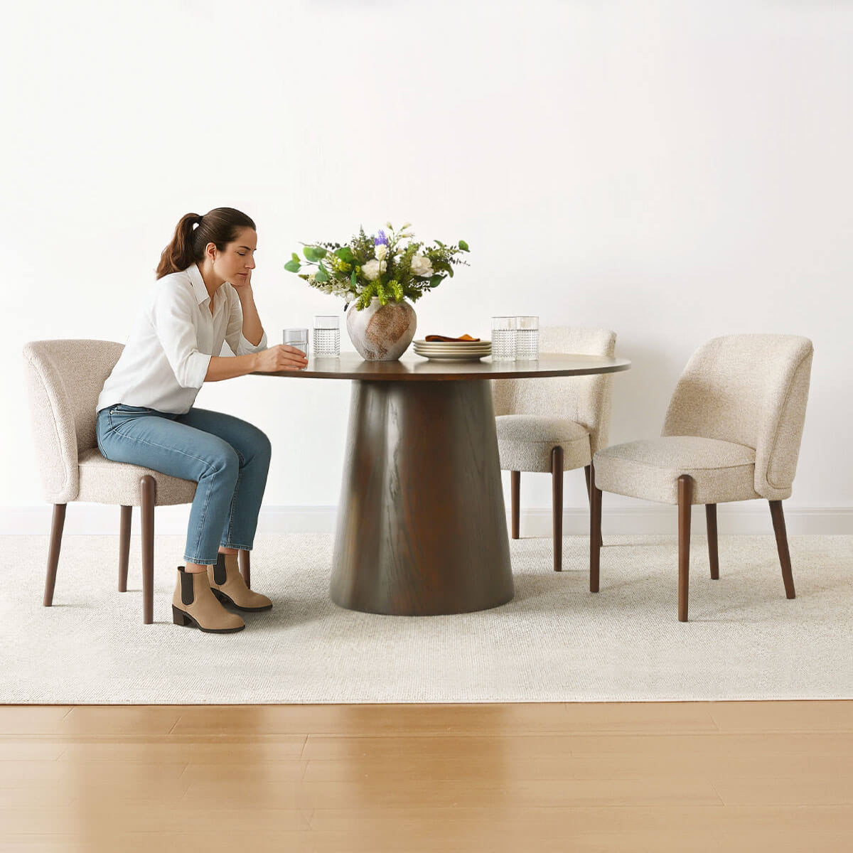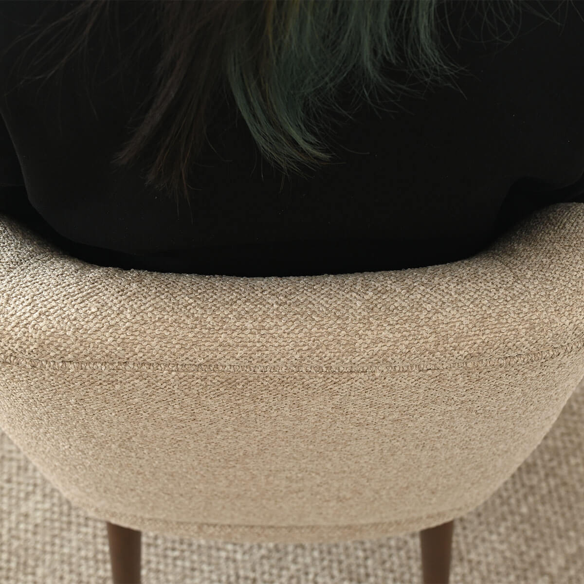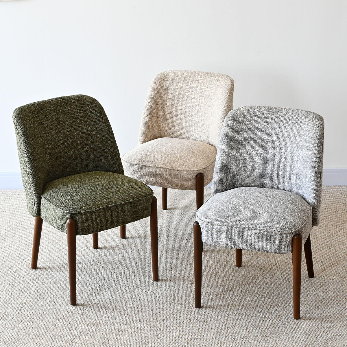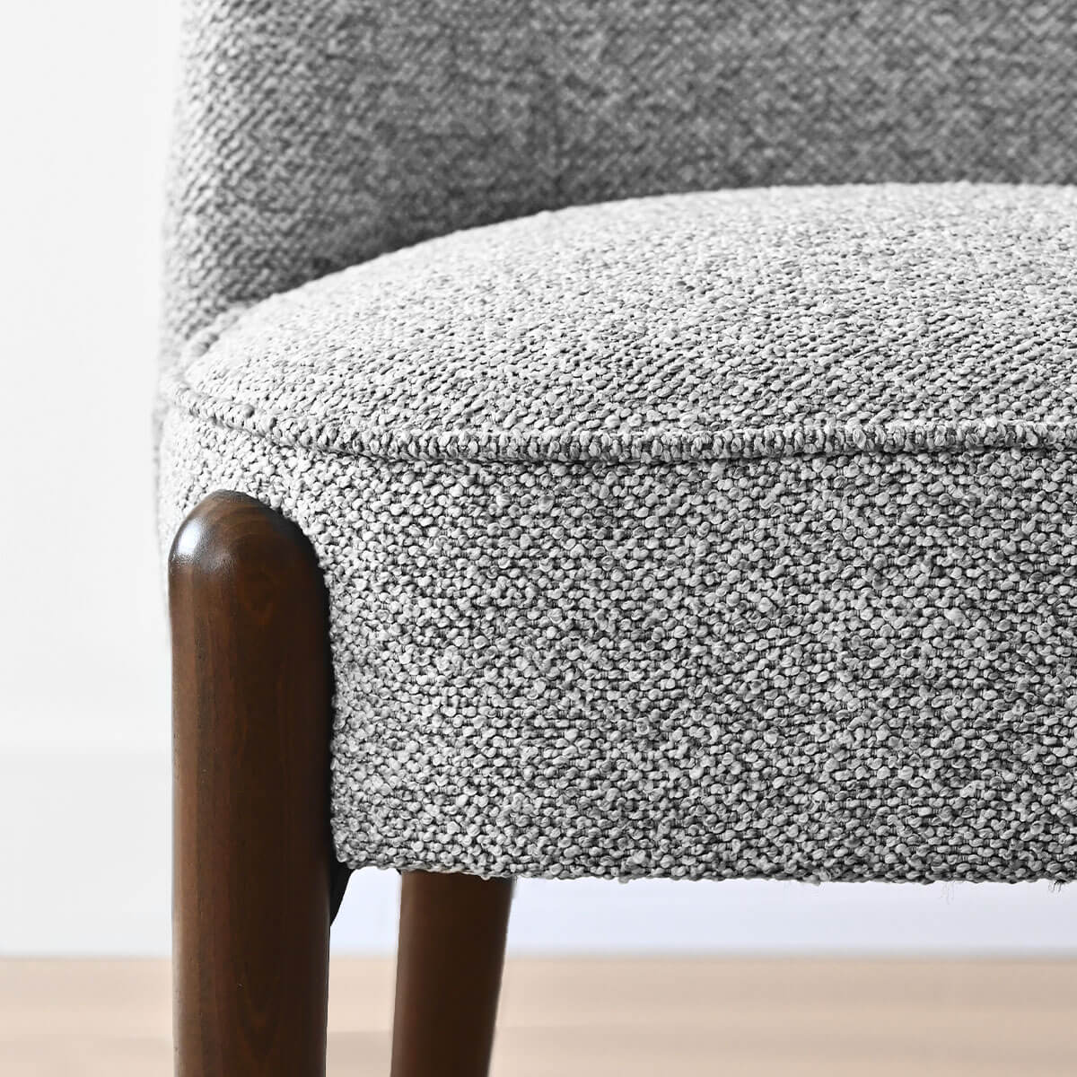 Elevate everyday dining with this duo of upholstered chairs. The luxuriously soft textured fabric feels refined yet inviting, while a wide, curved backrest offers wraparound support that encourages lingering meals and long chats. Beneath, solid beech legs in a warm walnut finish add natural elegance and dependable strength. Whether in the dining room, breakfast nook, or as chic accent seating, these chairs blend comfort, quality, and contemporary style in one effortlessly sophisticated package.