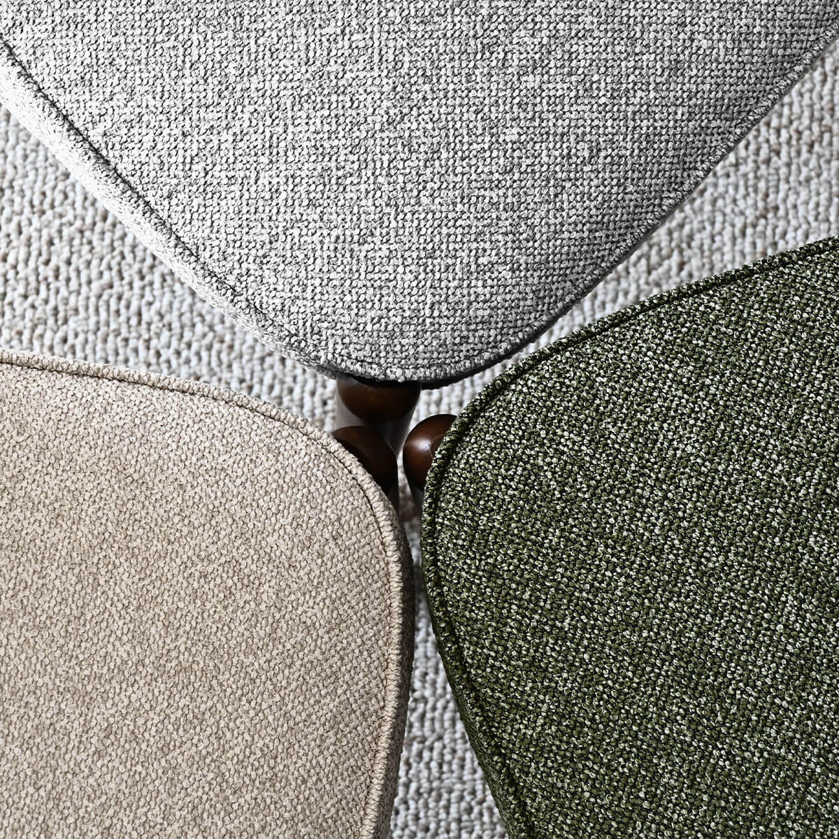 Set of two chairs wrapped in premium, subtly lustrous textured fabric.