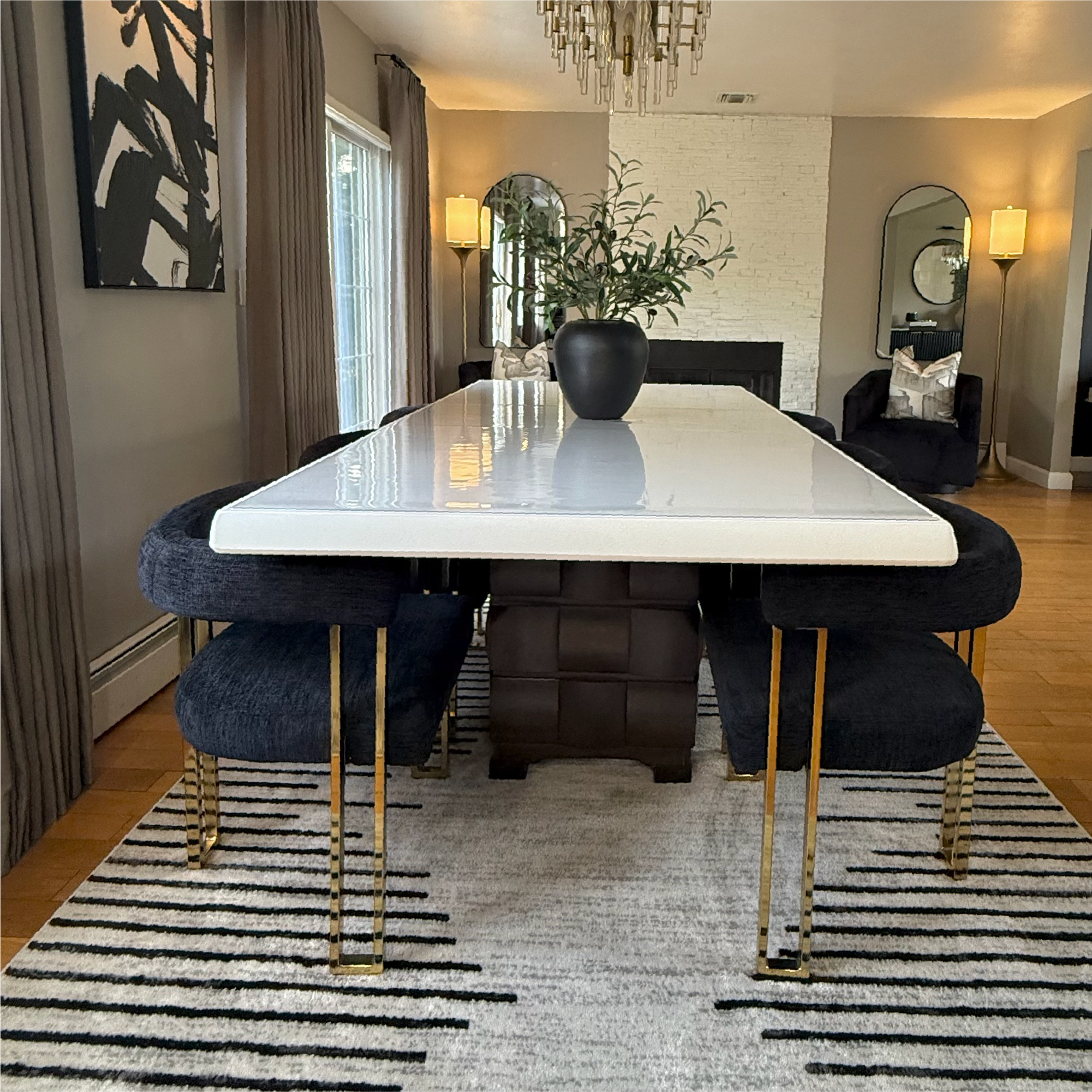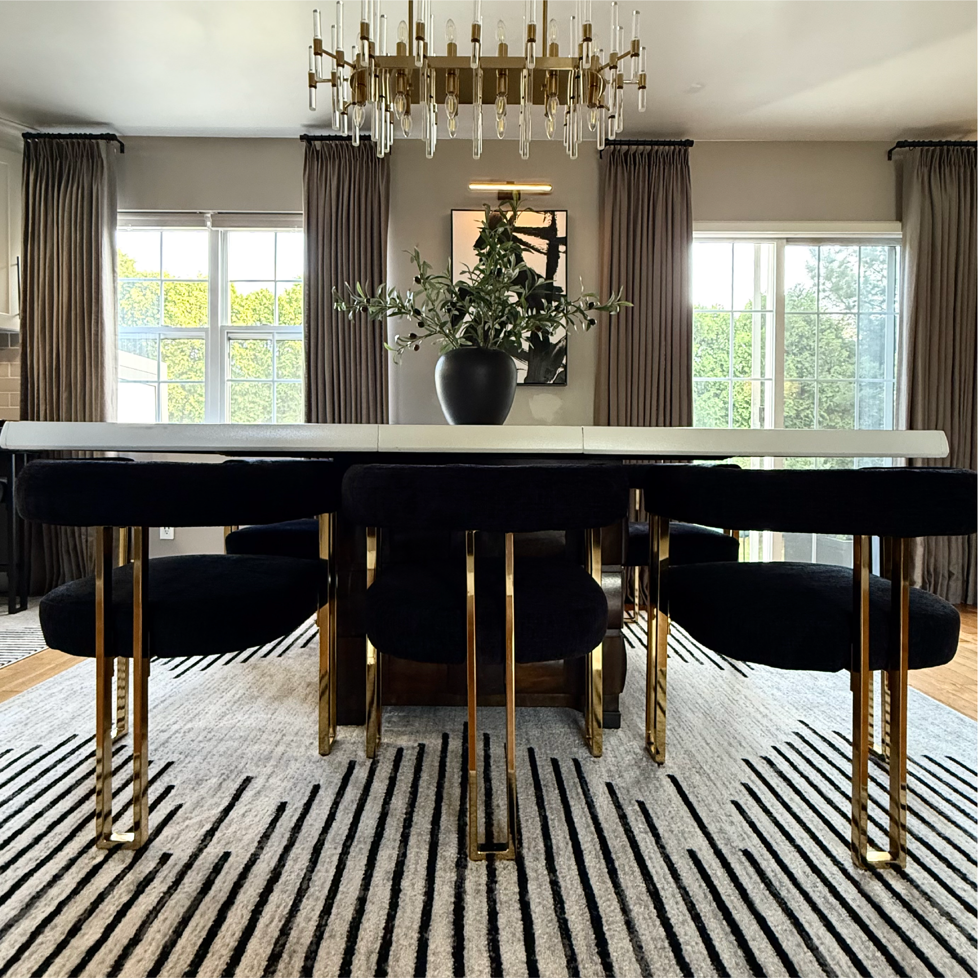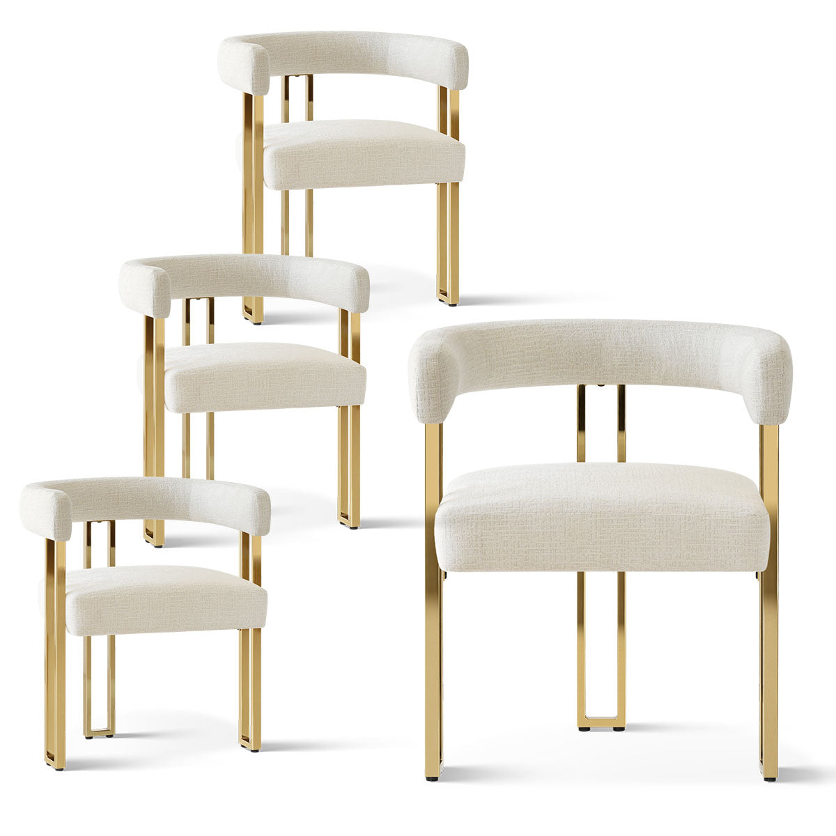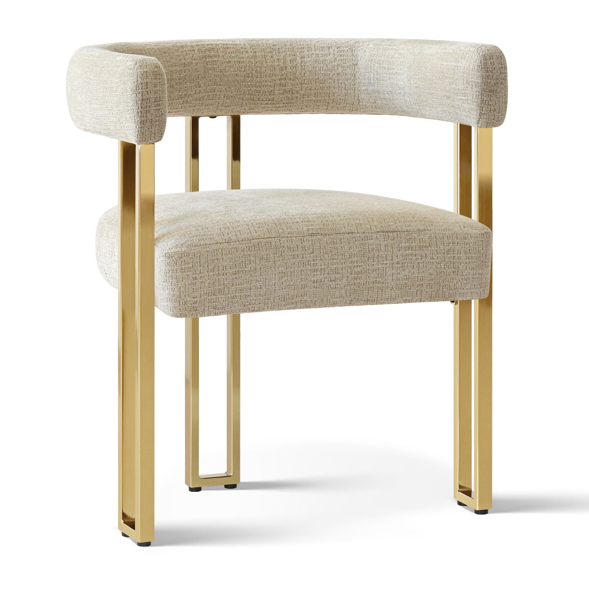 Elevate your dining space with these modern chairs that seamlessly blend style and functionality. Their low-profile design slips easily under your table, keeping the area neat and spacious. A polished gold metal frame, supported by three distinctive sled-inspired legs, adds a touch of refined elegance.Meanwhile, the wooden seat and back are upholstered in soft chenille fabric with foam padding, ensuring luxurious comfort and reliable support for up to 260 pounds per chair. Plus, they’re easy to assemble.