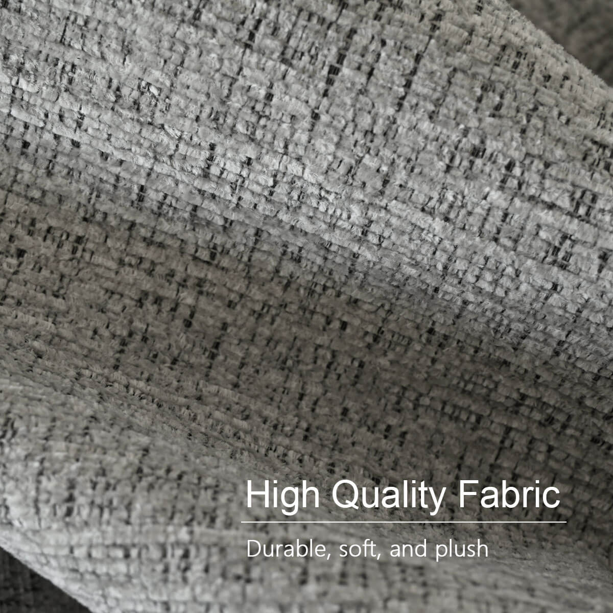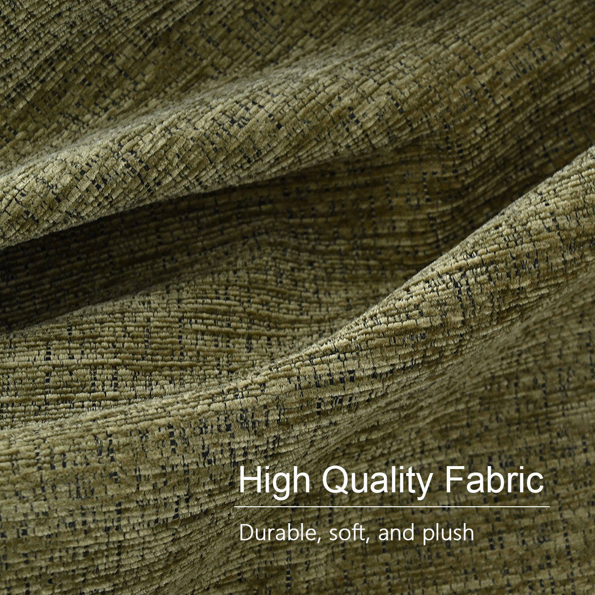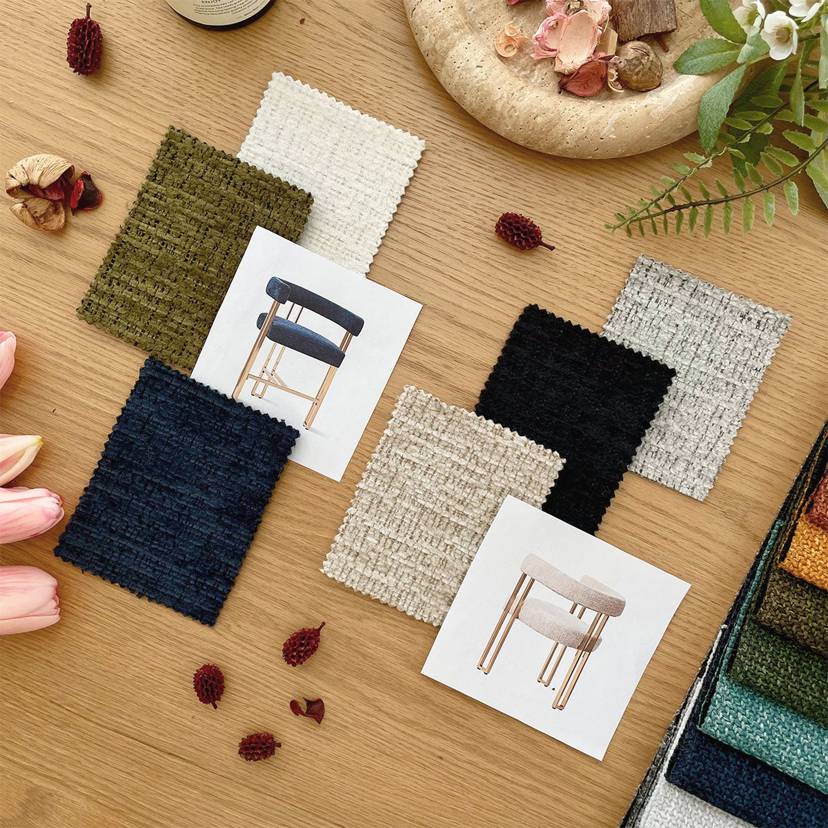 The wooden seat and back are covered in soft chenille fabric with foam padding, supporting up to 260 pounds per chair.